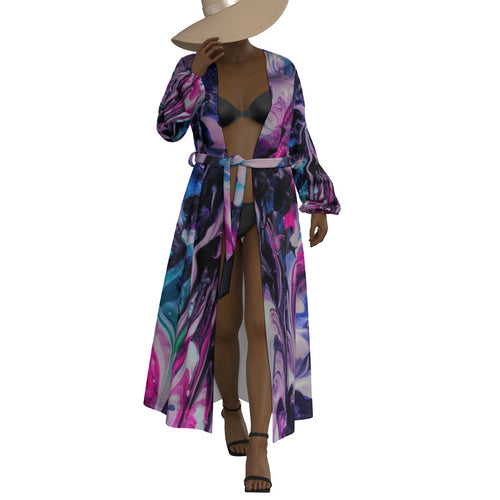 "Purple Diamond" All-Over Print Women's Lace-up Chiffon Robe (Print-On-Demand-Product)