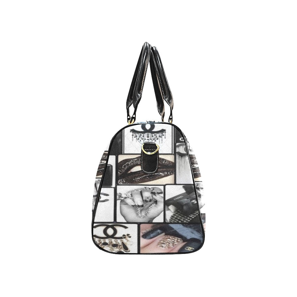 【Product description】27.51 Oz. Made from high-grade waterproof fabric, durable, water-resistant. One main compartment, big enough to pack your clothes, cosmetics, books and etc. One Inner zipper pocket on back wall. Sturdy portable belt, durable luggage tag and adjustable shoulder carry strap. Please be noted that don't make your main elements near the edge, or your artwork may be trimmed off during the cutting and sewing process.