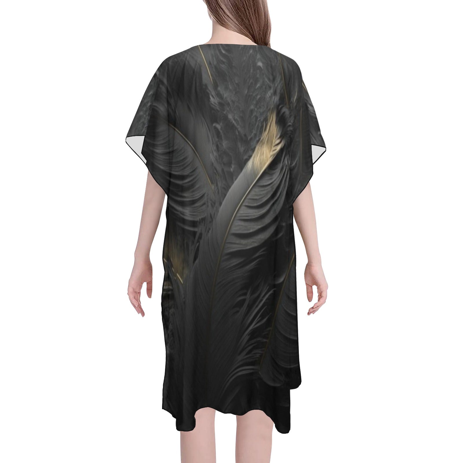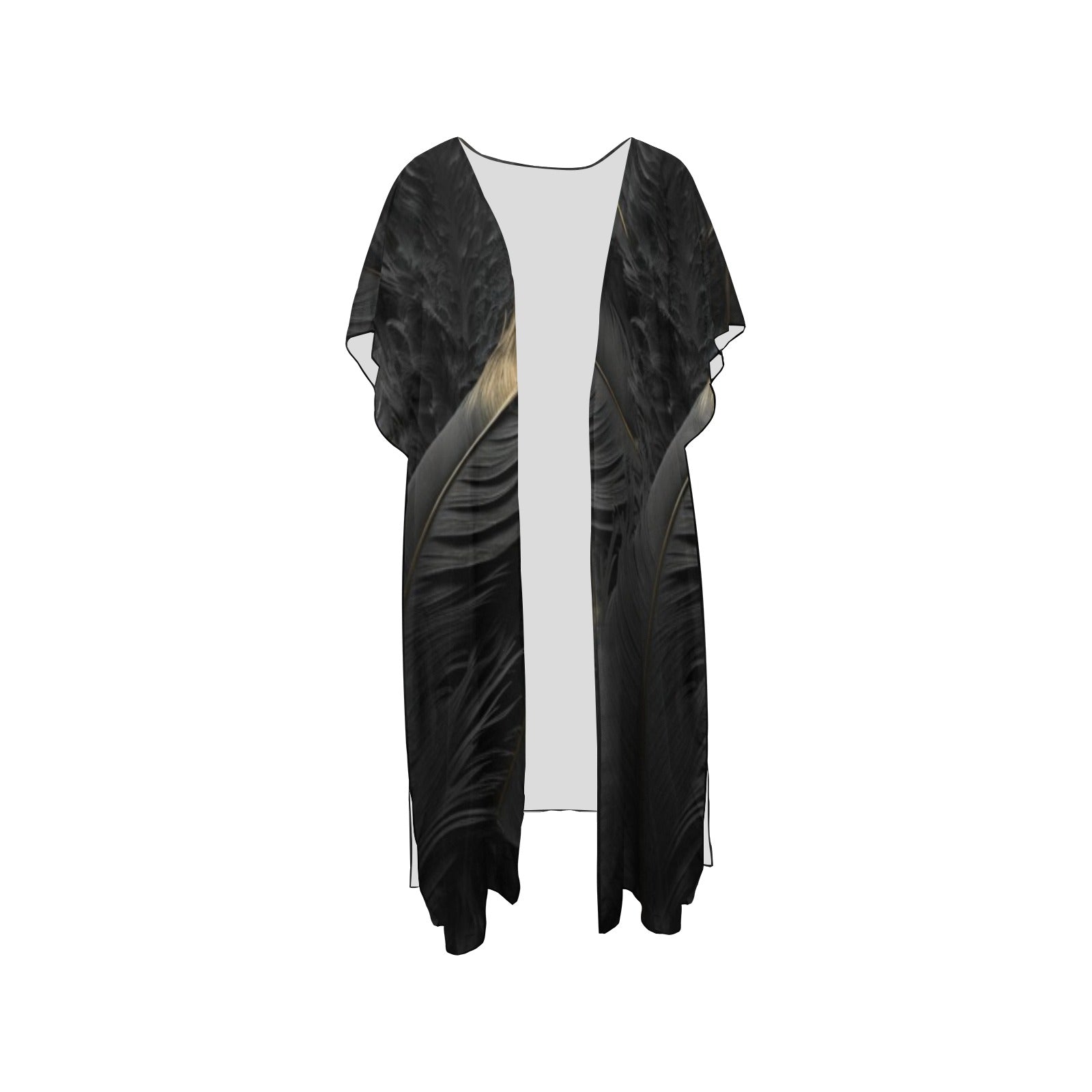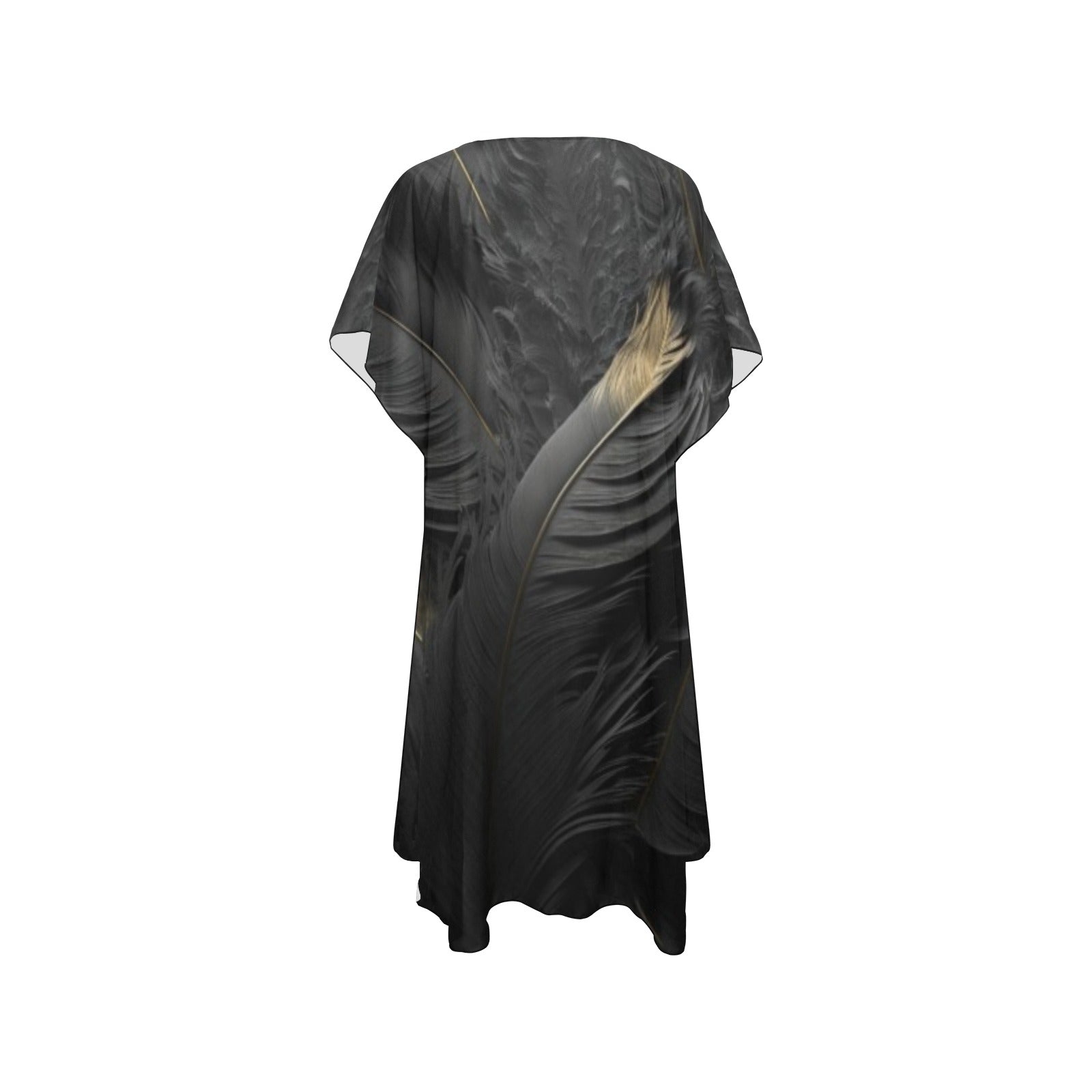 "Ruffle My Feathers" Mid-Length Side Slits Chiffon Cover Up (Model H50) (Print-On-Demand-Product)