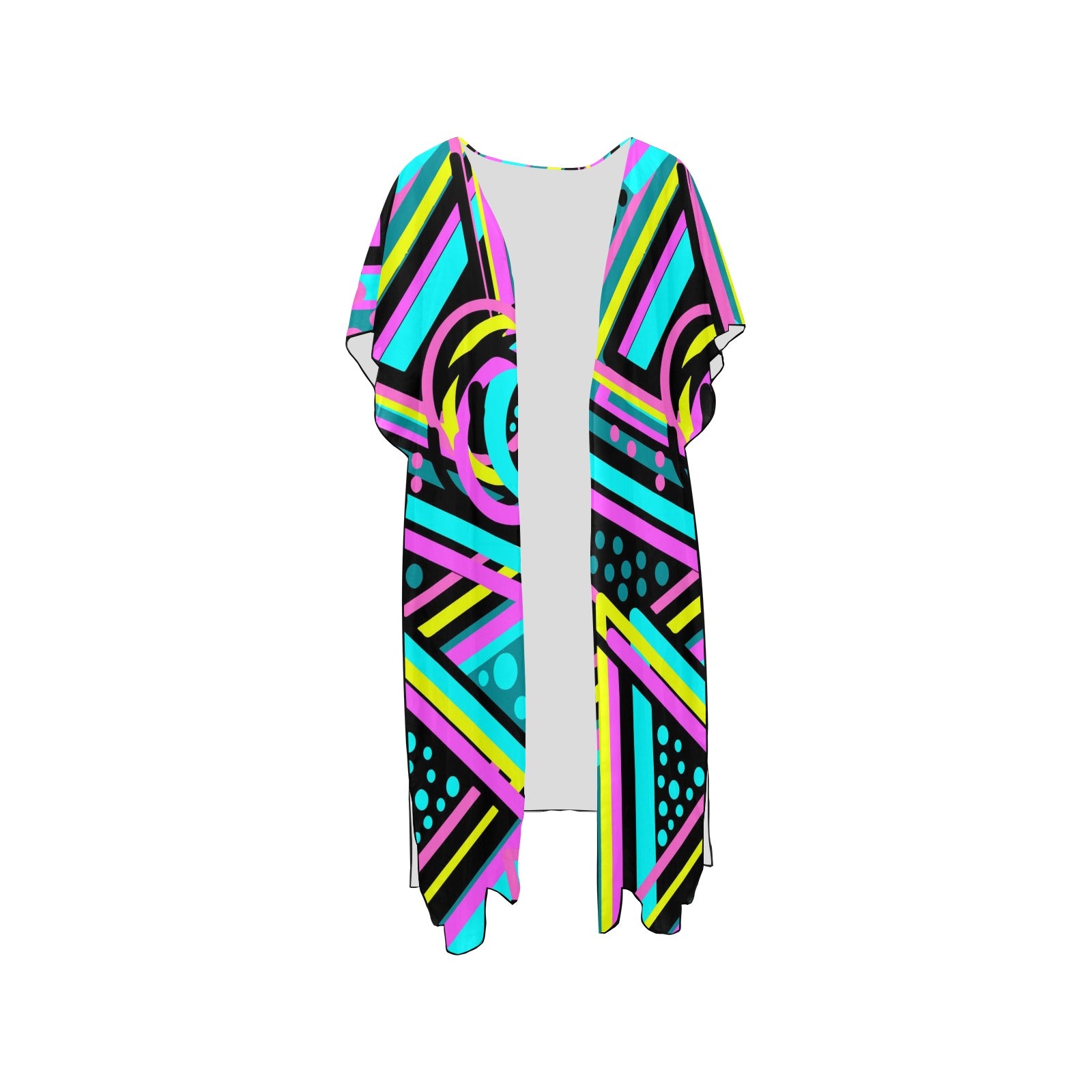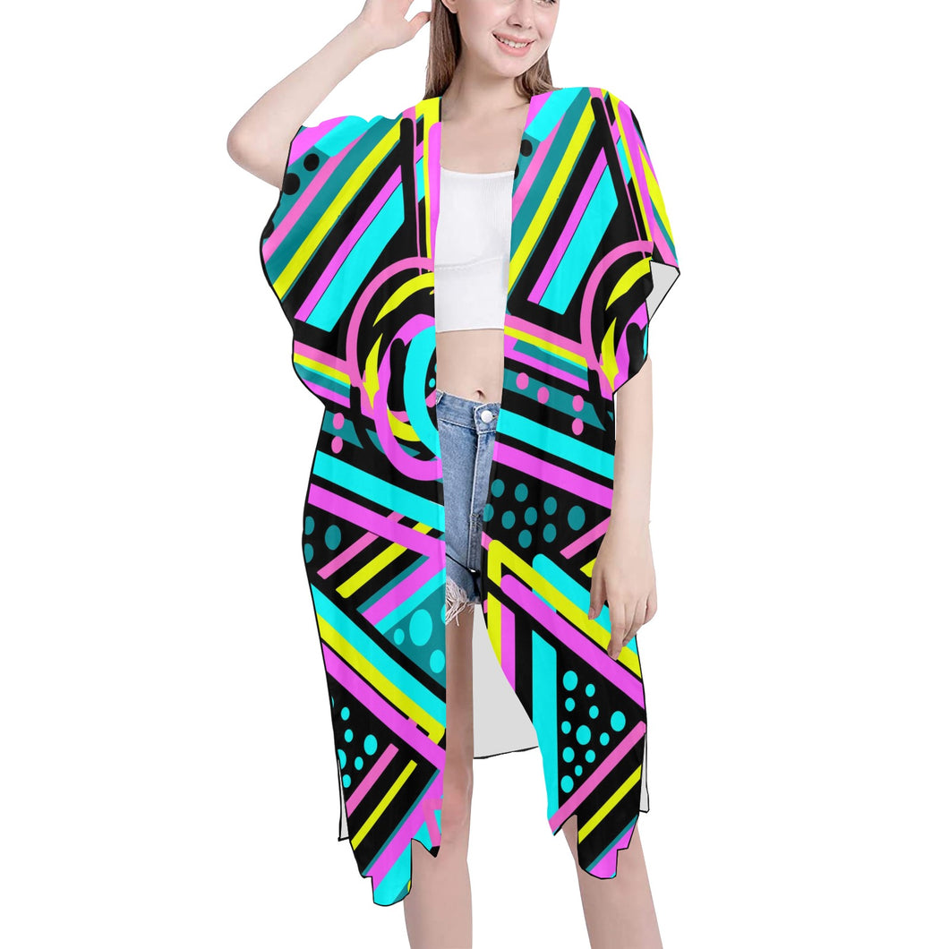 Mid-Length Side Slits Chiffon Cover Up (Model H50) (Print-On-Demand-Product)