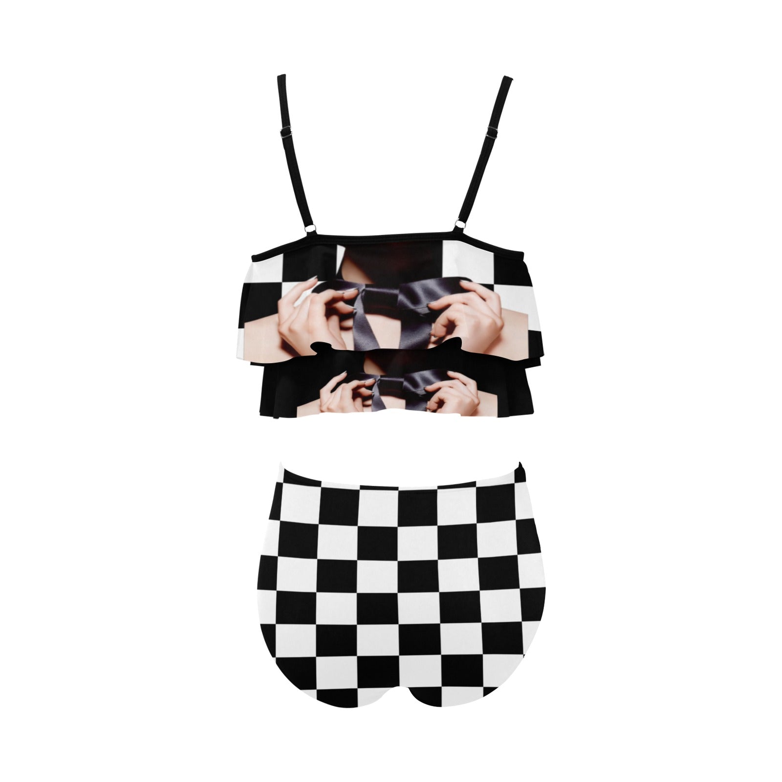 High Waisted Double Ruffle Bikini Set (Model S34) (Print-On-Demand Product)